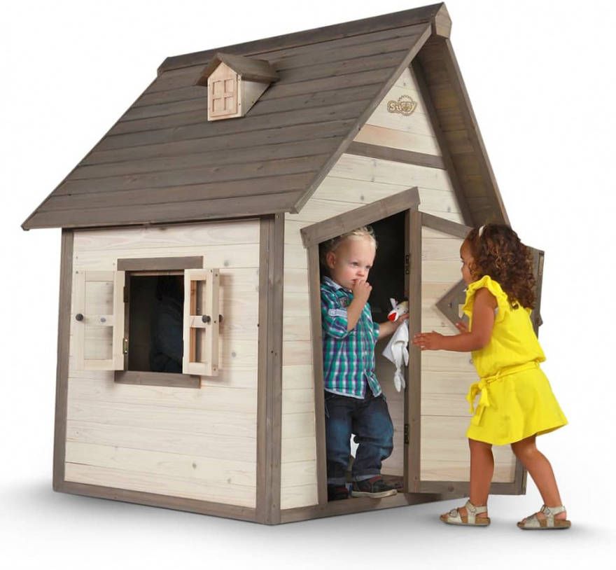Dit huisje lijkt zo uit een sprookje te komen. Door de scheve raampjes en deur ziet Cabin Speelhuis Grijs/wit van AXI er knus en gezellig uit. Onderin het huisje zit zelfs een klein spiekraampje. Hierdoor kunnen je kinderen de omgeving.
