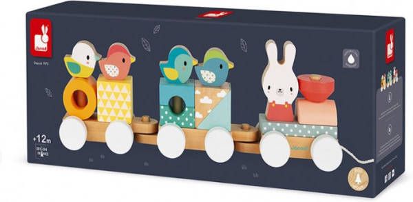 Deze houten blokkentrein uit de Pure collectie van Janod bestaat uit drie wagons met schattige dieren in verschillende vormen- De blokken zijn beschilderd met waterverf in lichte pasteltinten- De speelgoedtrein is geschikt voor kinderen vanaf 12 maanden en helpt al spelend bij het ontdekken van vormen en kleuren en het ontwikkelen van fijne motoriek-.